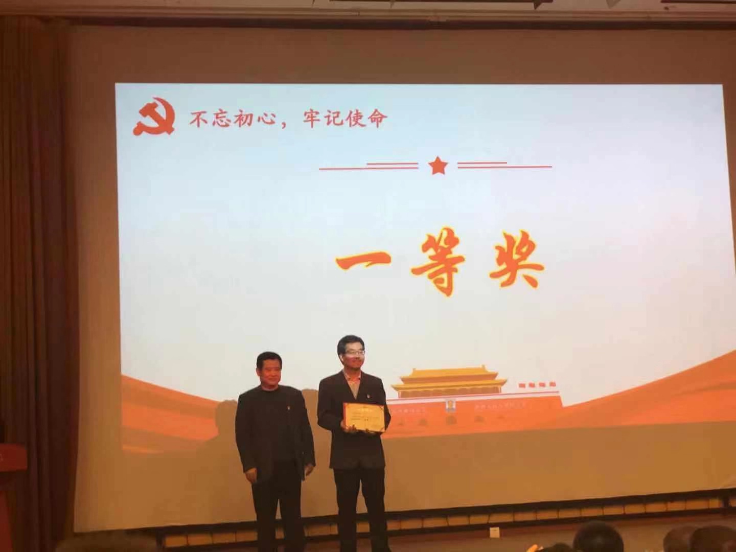 为深入学习贯彻习近平新时代中国特色社会主义思想和党的十九大精神,创新党员主题教育形式,提升党员教育培训效果,11月21日下午,我校“不忘初心、牢记使命”微党课比赛决赛在图书馆报告厅成功举办。3003新葡的京集团选派张志华参加了决赛。在此之前,3003新葡的京集团英语专业教研室和公共英语教研室两个支部分别进行了预赛。经过层层选拔,张志华同志脱颖而出,代表3003新葡的京集团参加了我校的决赛。在决赛上,张志华围绕八个英文关键词,从语言的传播功能入手,解析了党的十九届四中全会公报。其微党课立意新颖、语言流畅、富有感染力,获得现场热烈的掌声,最终不负众望,荣获比赛一等奖,我校党委书记齐福荣为其颁发了荣誉证书。