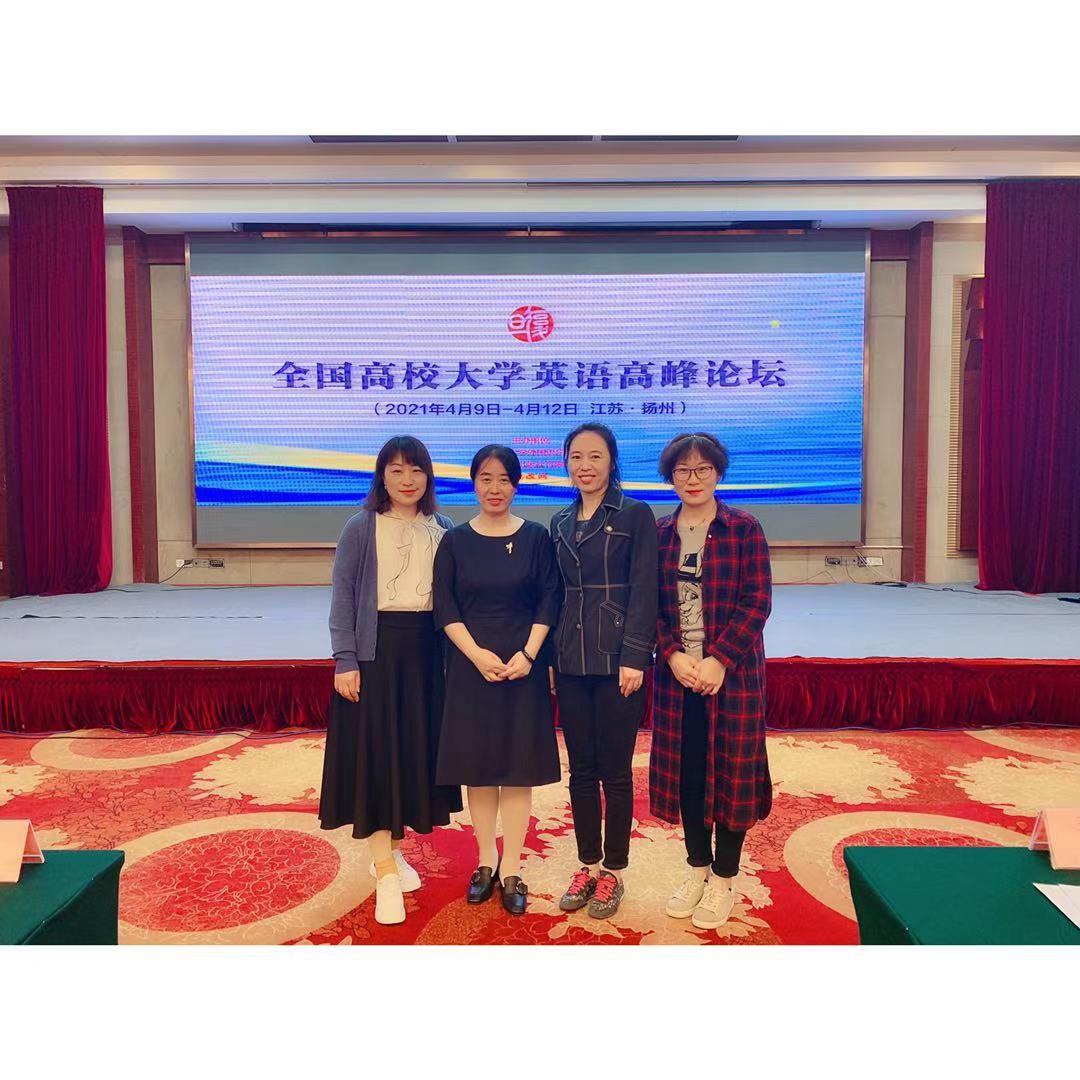 2021年4月9日至4月12日,“2021年全国高校大学英语高峰论坛”在江苏扬州召开,我校3003新葡的京集团大学英语课程思政特色教材建设团队应邀参加。3003新葡的京集团院长池丽霞教授在会议上作题为“从主题到视听说的多模态思政阅读教材建设”的主题发言。