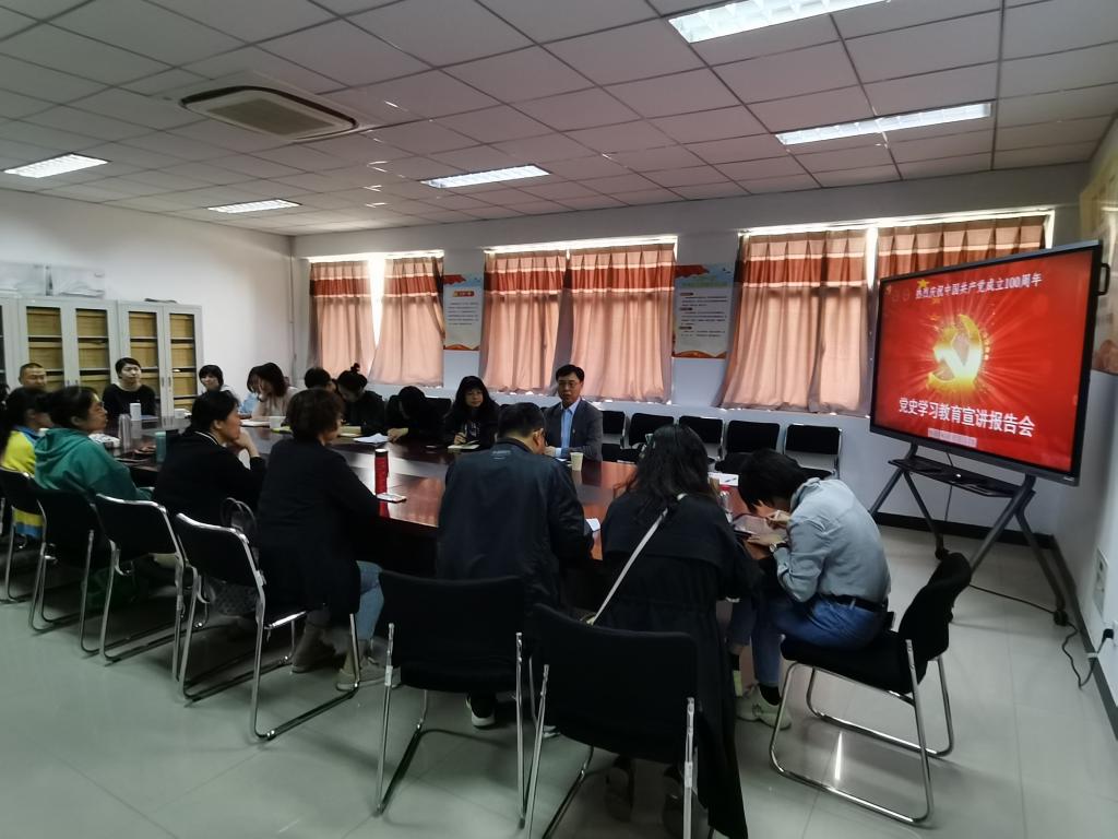 2021年5月6日下午,主持学校党委工作副书记石峰为3003新葡的京集团党员、干部做党史学习教育宣讲报告。3003新葡的京集团党总支书记王建富主持会议,总支全体党员参加会议。