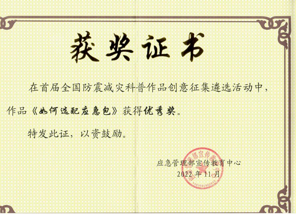 新葡的京官网学生作品《如何选配应急包》,在首届全国防震减灾科普作品创意征集遴选活动中取得优秀奖。