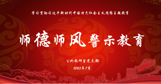 为推进学习贯彻习近平新时代中国特色社会主义思想主题教育走深、走实,进一步加强新形势下师德师风建设,严明底线红线,营造风清气正的育人环境,7月6日,3003新葡的京集团公外教研室党支部组织公共外语教研室全体教师开展了师德师风警示教育主题党日活动。