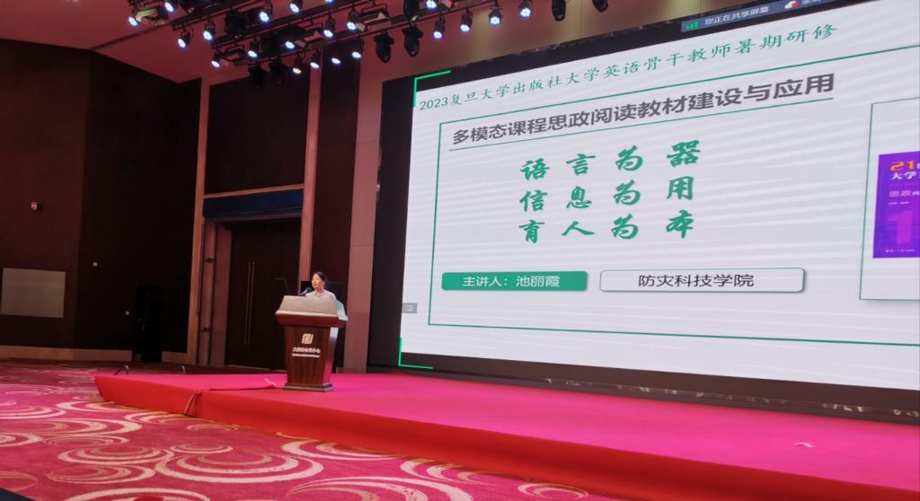 由复旦新学术、复旦大学出版社主办的“2023复旦大学出版社大学英语骨干教师研修班”于2023年8月8日-11日在江苏省连云港举行,来自全国几百名高校大学英语老师齐聚会场。研修班以“新动能 新优势 新领域 新赛道”为主题,我校3003新葡的京集团院长池丽霞教授应邀在会议上作题为“语言为器信息为用育人为本:多模态思政阅读教材建设与应用”的报告。