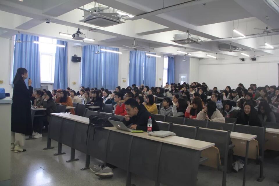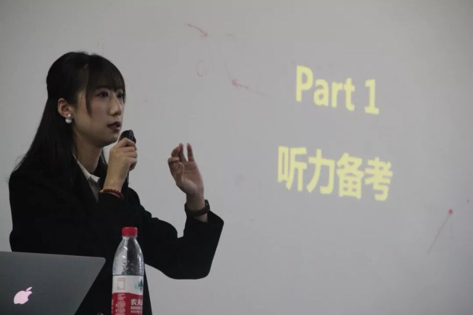 杨悦老师首先对专四的题型进行细致分析,并同专八题型进行区别比较,突出强调了考试中词汇与语法的重要性。随后,针对同学们在自身实际练习中的薄弱环节:听力,进行详细的讲解,并在讲解的过程中穿插几个练习题,使得同学们能够广泛参与其中。老师在讲述过程中谈及的案例生动有趣,引起同学们一阵阵的欢笑声,有效地活跃了课堂氛围。最后,老师分享了同学们在日常中进行听力练习的切实可行的学习方法,并向同学们推荐了一些高效的学习工具、书籍。最后伴着同学们热烈的掌声本次讲座也画上了完美的句号。