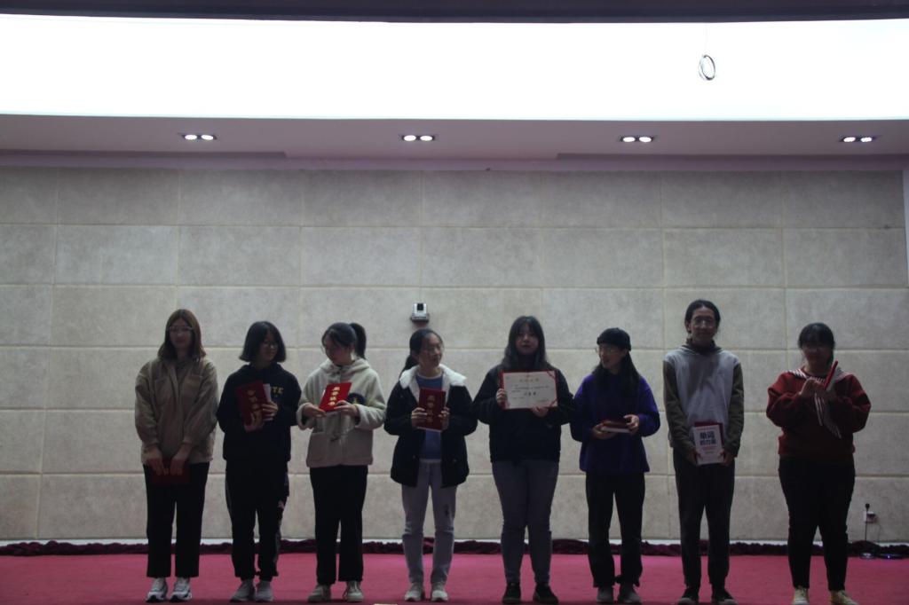 本次词汇比赛形式独特、内容丰富。采取团队比赛的形式,采用淘汰赛制,角逐一二三等奖,24人共分为6组,每组4人,每组由1名英语专业学生和三名非英语专业学生组成。第一轮百变词汇考验了选手的词汇储备量;第二轮趣味抢答虽然难度很大,但仍有选手取得优异成绩;第三轮情景问答环节,各位选手展示了深厚的语言功底。最终第六组选手脱颖而出,赢得本次比赛的冠军。